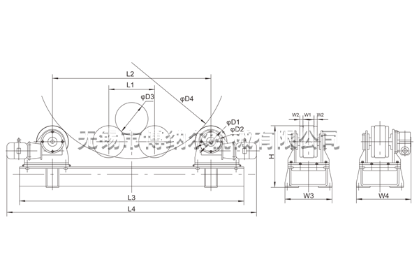 According to the diameter of the workpiece, the swing of the roller group can be automatically adjusted without manual adjustment. The combined roller has large load-carrying capacity and strong driving capacity. According to the driving mode, it can be divided into two forms: single-drive and double-drive.